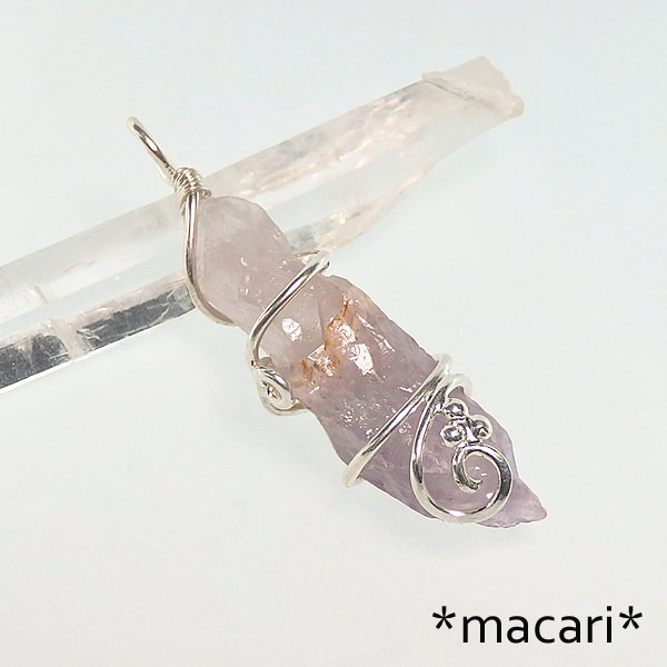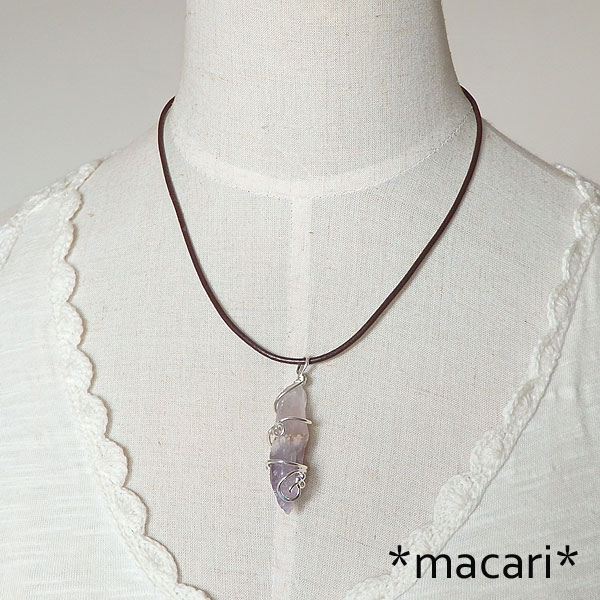 オーラライト(アメシスト)の唐草ペンダント 複雑な形状の面白いオーラライトと命名されているアメシストを かなり大ぶりなペンダントなので、太めの皮ひもやチェーンに通してお使いください。