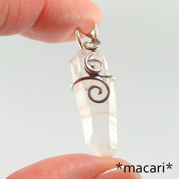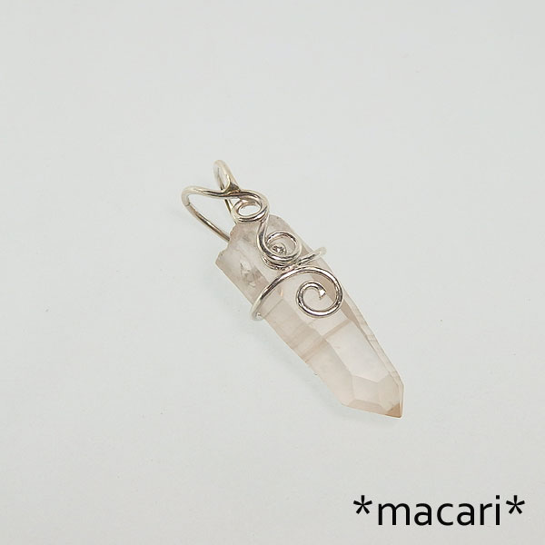 レムリアンシードクリスタルの唐草ペンダント ほんのりオレンジ色のレムリアンシードクリスタルを銀線でペンダントに仕上げました。 透明感のある硬質な雰囲気の水晶も綺麗ですが、こちらのようなマットな質感の水晶は こちらは石の裏側に穴をあけて金具を固定しています。