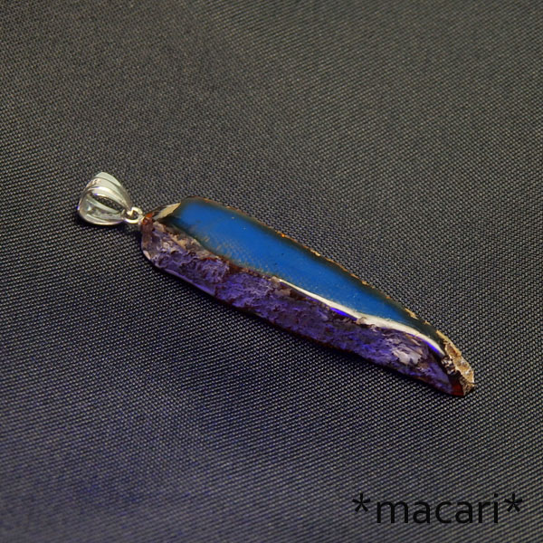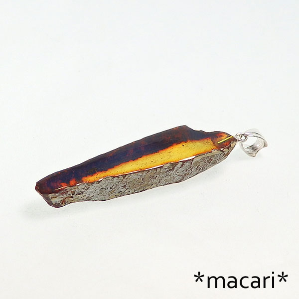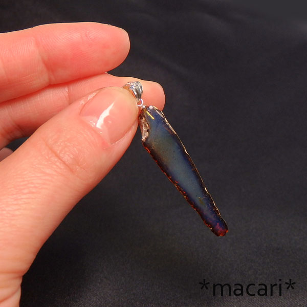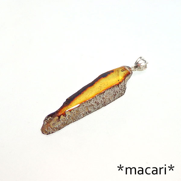 ブルーアンバーの原石スライスペンダント ブルーアンバーの原石スライスを使用したシンプルで個性的なペンダントです。 今回もsilver925で仕上げました♪