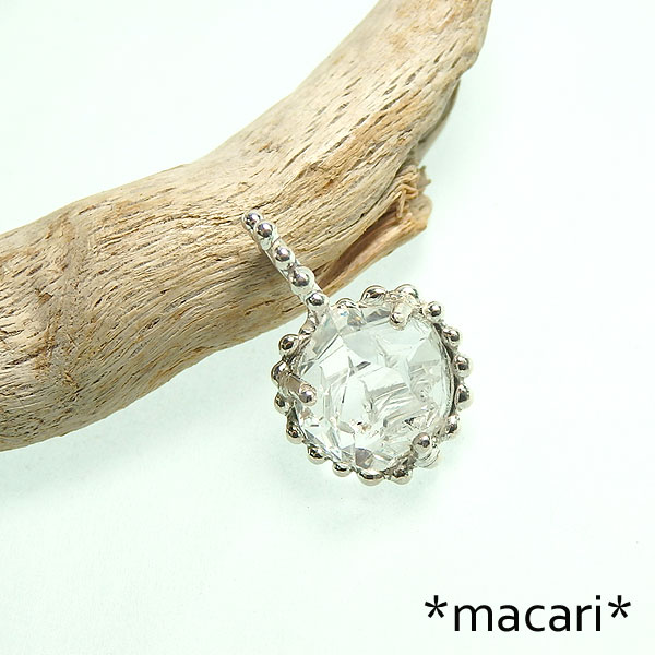 輝きの美しいハーキマーダイヤモンド(水晶)を粒飾りの枠でペンダントに仕上げました。