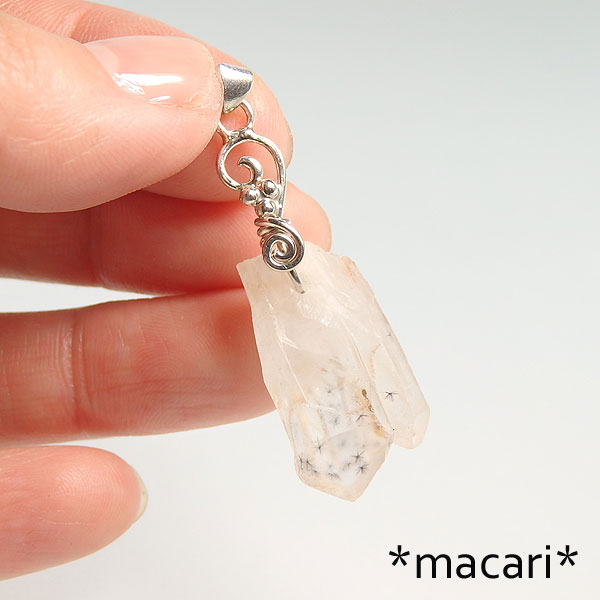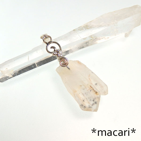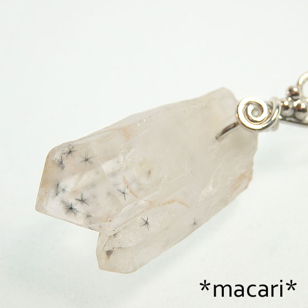 小さな黒い星形のホランド鉱を内包した水晶の原石をシルバーの唐草飾りであしらった 可愛らしいペンダントに仕上げました。 以前制作したものよりも大きめの結晶です。