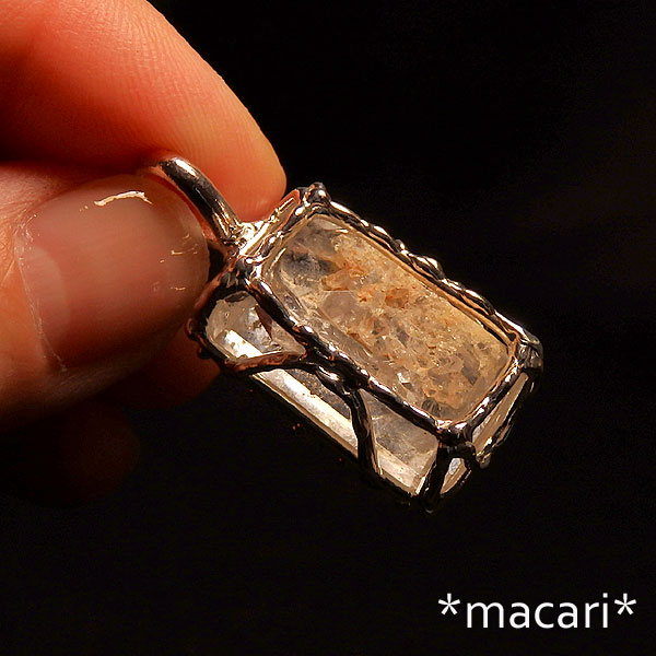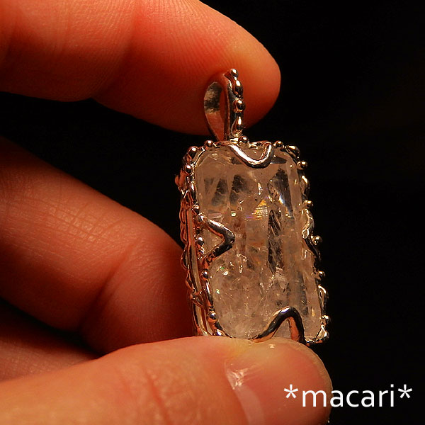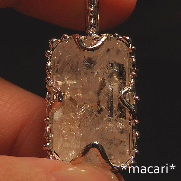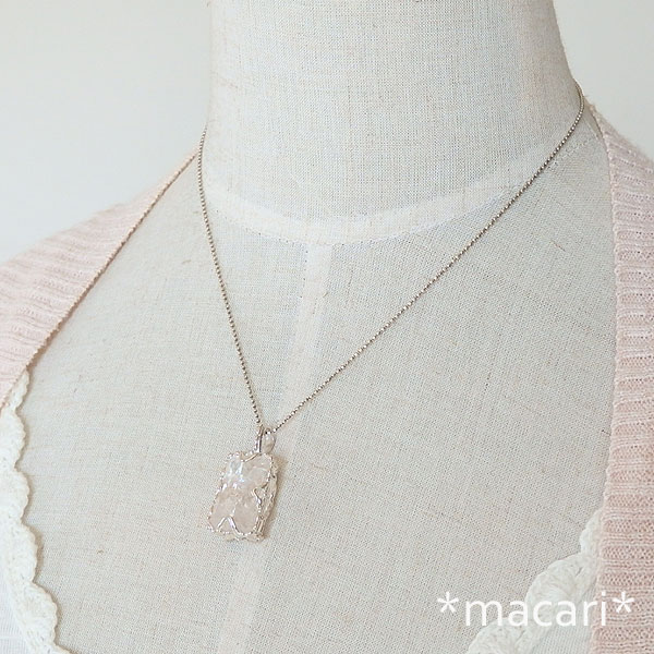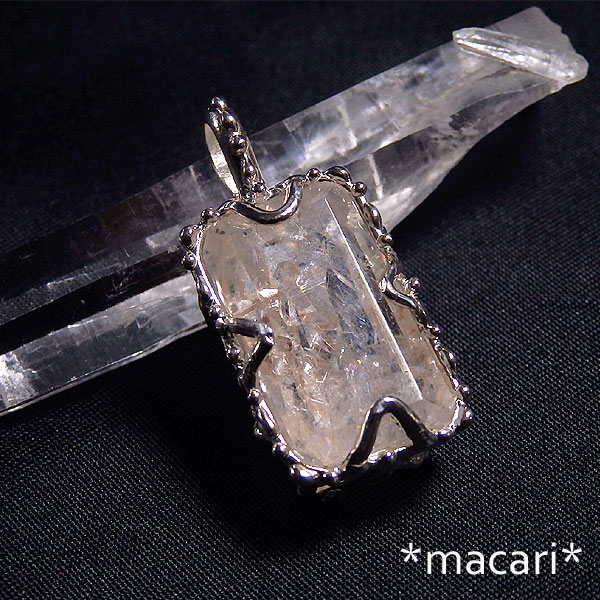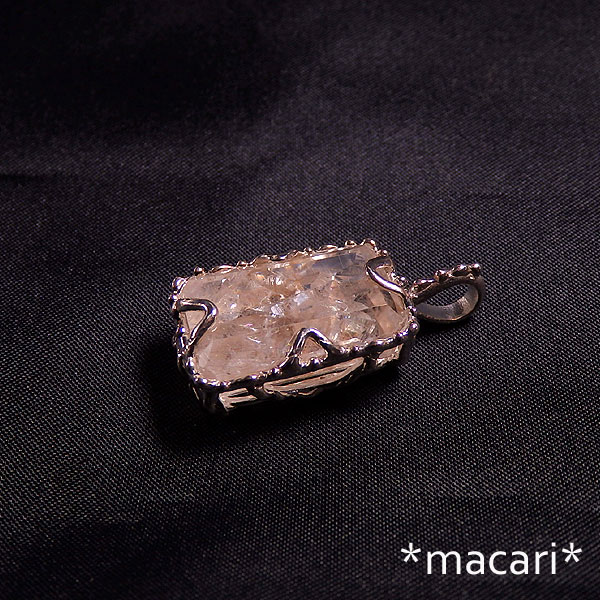 複数の結晶が複雑に入り込んだ水晶のカットルースを粒飾りのペンダントに仕上げました。