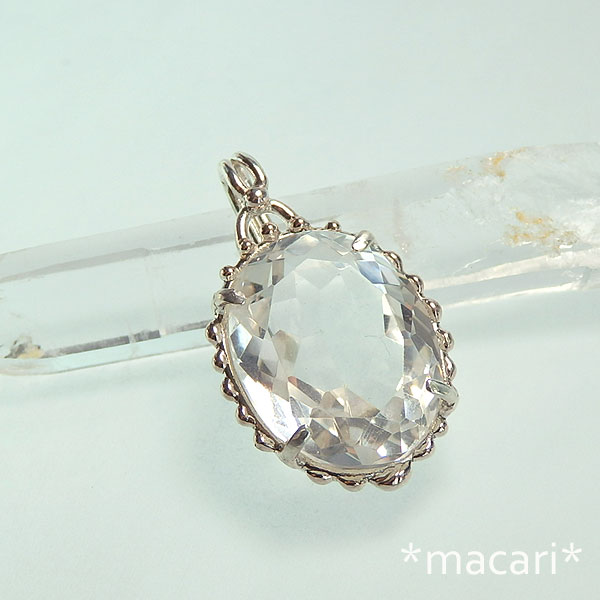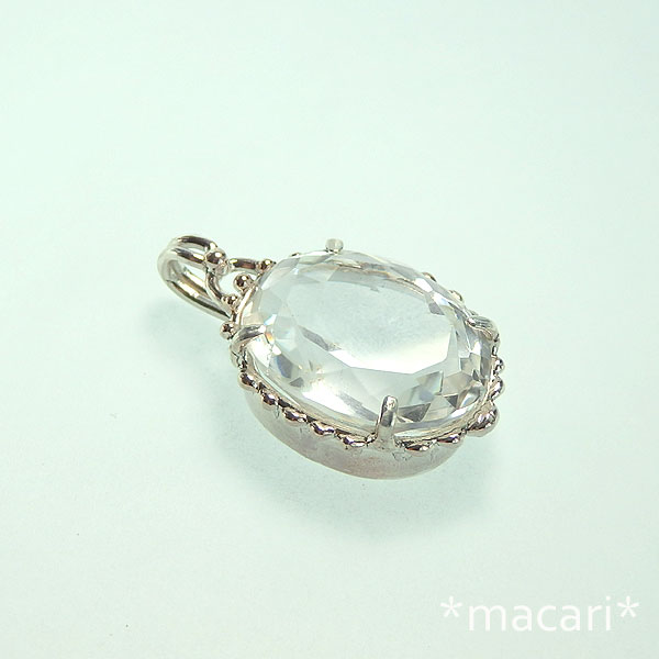 大粒のファセットカットの水晶を粒飾りのペンダントに仕上げました。 どんな装いにも合わせやすいので、一個あると便利だと思います。^^ 目立つインクルージョンやクラックもなく、とても綺麗ですが |