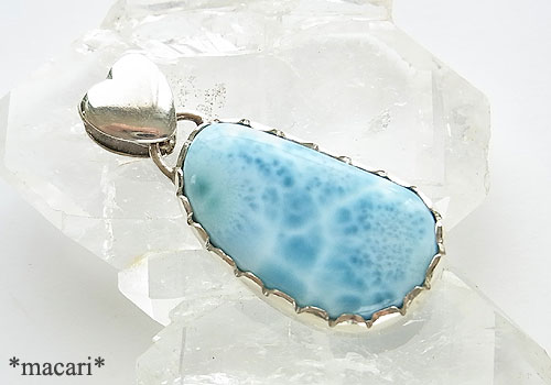 フリーシェイプのラリマールースをハートのバチカンにぶら下げたシンプルなペンダントです。