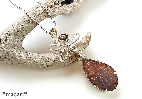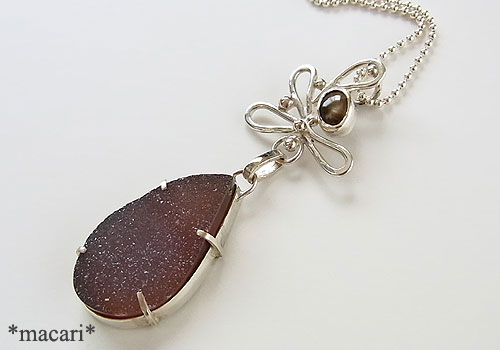 微細な結晶が美しいドゥルージーアゲートと、ブラックスターサファイアを組み合わせた個性的なペンダント。
