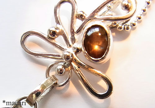 デザインは気泡を浮かべる水草をイメージしています。そのうちグリーン系やブルー系のルースでも似た感じのものを作ろうかと考え中。