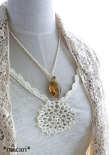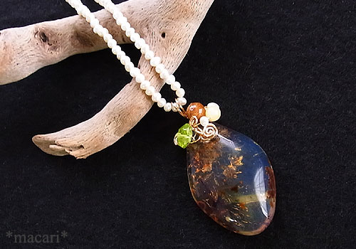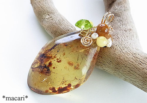 ブルーアンバーのワイヤーペンダント