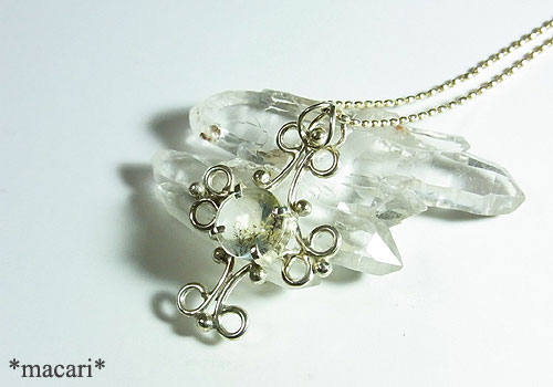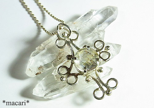 小粒のデンドリッククォーツを中心にあしらったクロスモチーフのペンダントです。