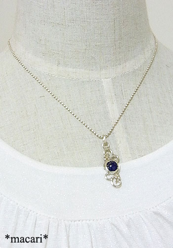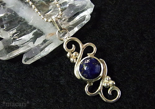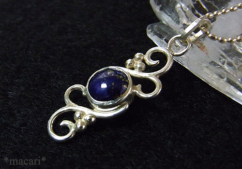 群青色にパイライトの金色の輝きが、まるで星空のように美しいラピスラズリを唐草デザインのペンダントに仕上げました。