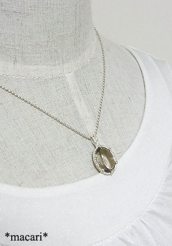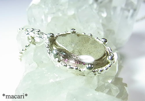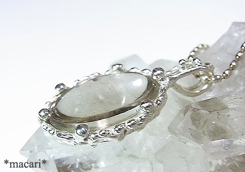 「ピンクファイアークォーツ」をシルバーの粒々枠で留めたペンダントに仕上げました。
