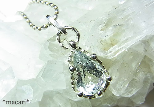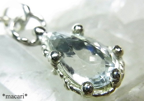 シルバーブルーのベリルを粒々デザインのペンダントに仕上げました。