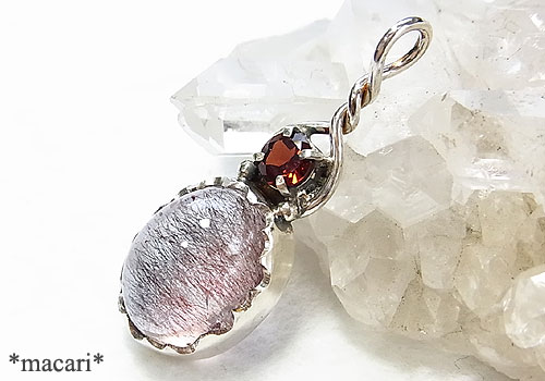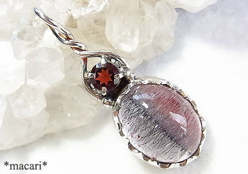 インクルージョンクォーツとガーネットのペンダント