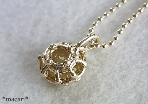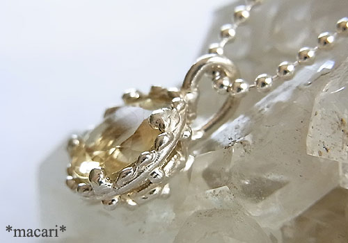 輝きの美しいゴールデンラブラドライトを銀の粒飾りの枠に留めたペンダントに仕上げました。