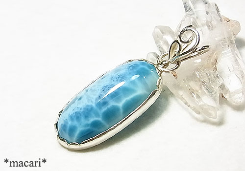 波打ち際のような美しい模様の大粒ラリマーをシンプルなペンダントに仕上げてみました。濃い青の綺麗なラリマーです。