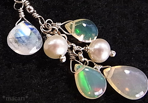 【使用石】エチオピアオパール 7×5〜9×6ミリホワイトラブラドライト6.5×6.5ミリ淡水パール5ミリ
