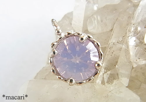 ローズクォーツに青み足したような、不思議な色合いのクォーツを粒飾りのシンプルなペンダントに仕上げました。カットも細かく綺麗なので、石の底から湧き上がるような輝きが大変美しいクォーツです。