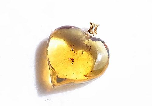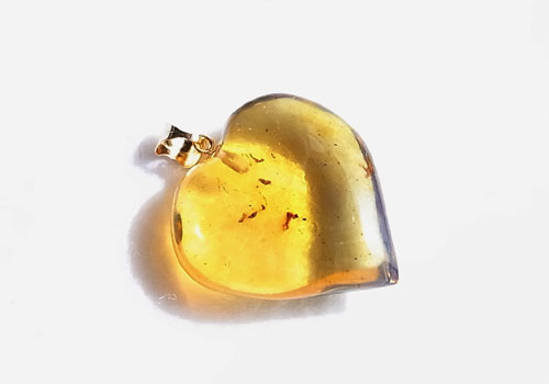 透明感のあるブルーアンバーのハート型ルースにk18の金具を取り付け、シンプルなペンダントに仕上げました。