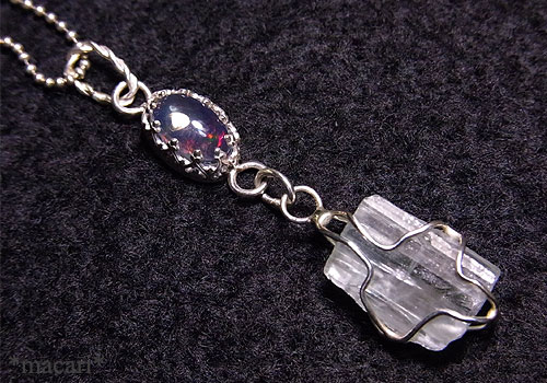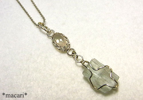 ウォーターオパールのような透明感のあるメキシコオパールにアクアマリンの原石をぶら下げてみました。