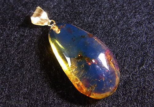 ブルーアンバーはドミニカで産出する希少琥珀で、紫外線に当たると蒼く蛍光する性質があります。