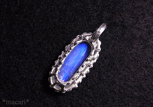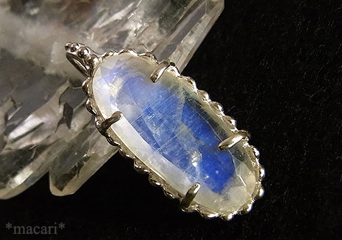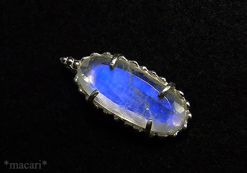 鮮やかなブルーの輝きが美しいブルームーンストーンを粒飾りの付いたシルバーペンダントに仕上げました。