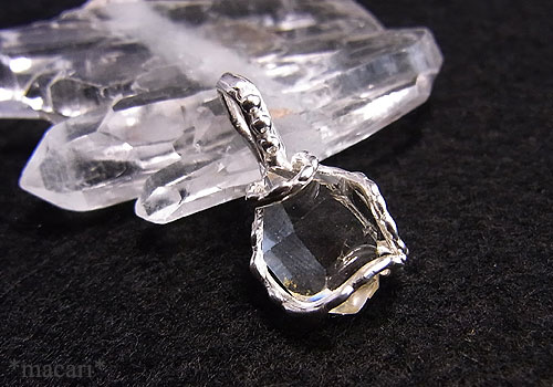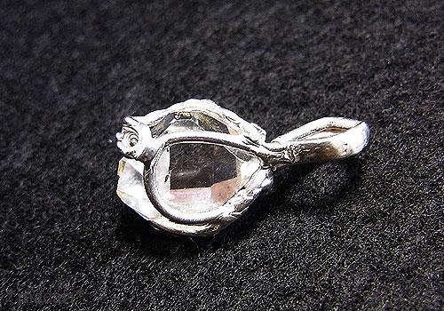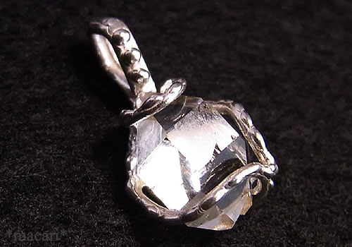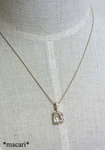 アメリカニューヨーク州ハーキマーで産出する、コロンとした両錘水晶をシンプルなデザインのペンダントに仕上げました。