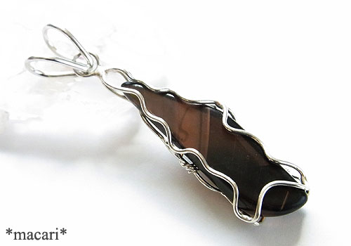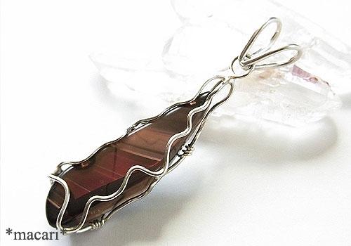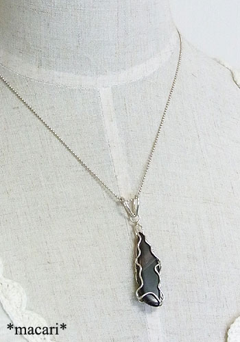 オレゴン州で産出する希少なファイアーオブシディアン(黒曜石)をシルバーで籠に閉じ込めたペンダントに仕上げました。
