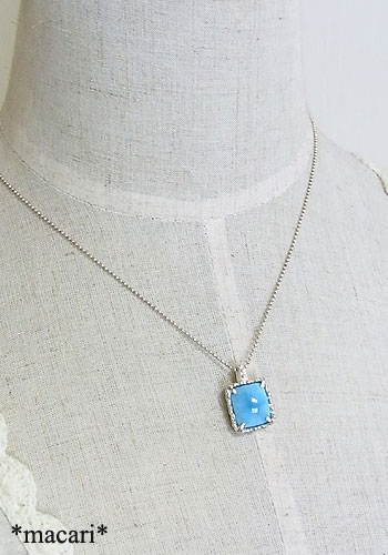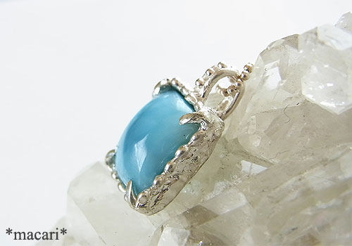 鮮やかなブルーの角型カボションのラリマーを粒飾りの可愛らしいペンダントに仕上げました。グレード付けのない石ですが、色合い的にはAAAに近い物となります。
