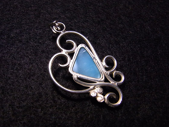 ドミニカ共和国で産出される希少なラリマー(ペクトライト)を、唐草デザインのペンダントに仕上げました。
