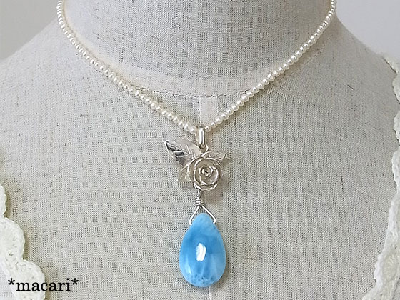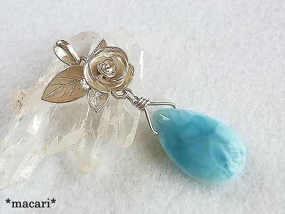 ラリマーの薔薇飾りペンダント
