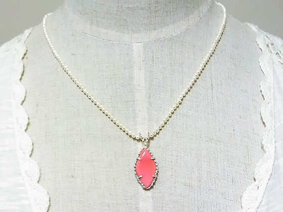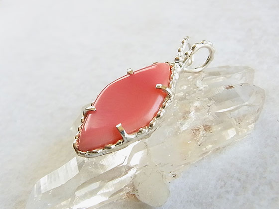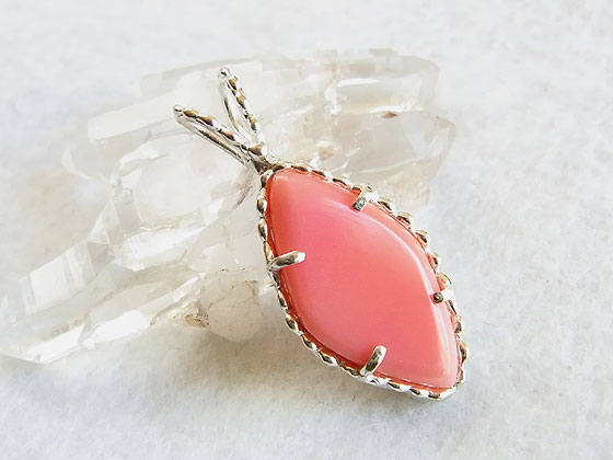 カリブの海から届いた美しいピック色のコンクシェルを シルバーの輝きを添えたシンプルなペンダントに仕上げました。 春先の装いにピッタリの可愛いペンダントトップです♪ バチカンは大きめですので、3〜4ミリサイズの淡水パールネックレスなどに通してもお使いいただけます。