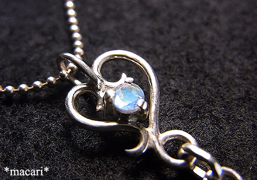 *ブルームーンストーンという名称で仕入れた石を使っていますが、こちらはアルカリ長石のムーンストーンではなく、鉱物としてはラブラドライト(斜長石)になります。