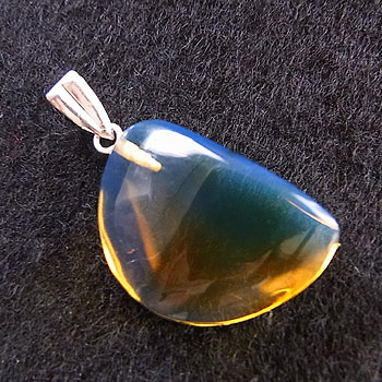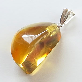 ブルーアンバーのペンダント 僅かに内包物が見られますが、全体的にクリアなドミニカ産のブルーアンバーを ブルーアンバーは2500〜3000万年前の広葉樹の樹脂が長い年月をかけて化石化したものです。 黒い背景を置いていただくと、日光や蛍光灯の明かりでも青く輝く様子がご覧いただけます。 蛍光する琥珀は大変希少で、こちらのような強蛍光のものは高値で取引されています。 画像3枚目は蛍光灯で撮影。 | |