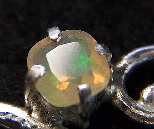 オパールは光が当たっていないとフンワリとした優しいミルキーカラーですが、強い光に当たると七色の美しい遊色が浮かび上がります。