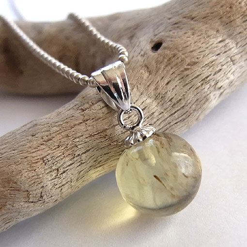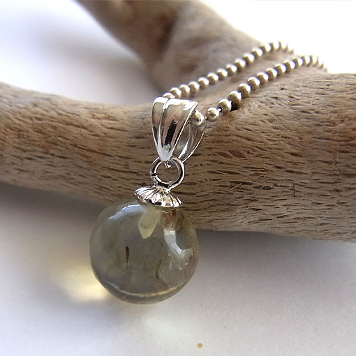 ブルーアンバーの丸玉ペンダント