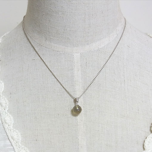 小粒のブルーアンバーをシンプルなペンダントに仕上げました。