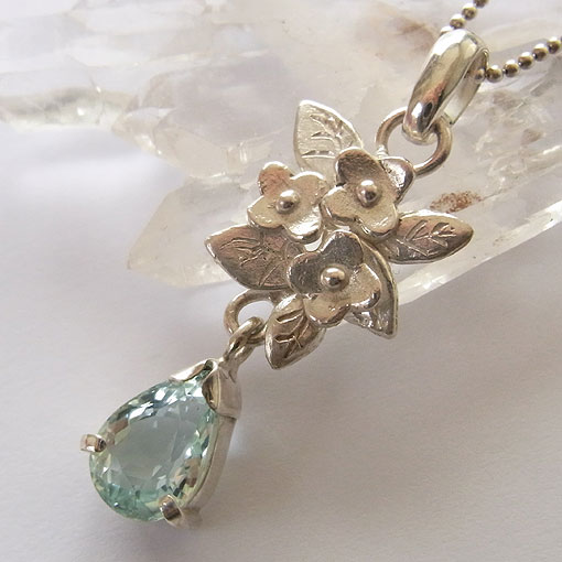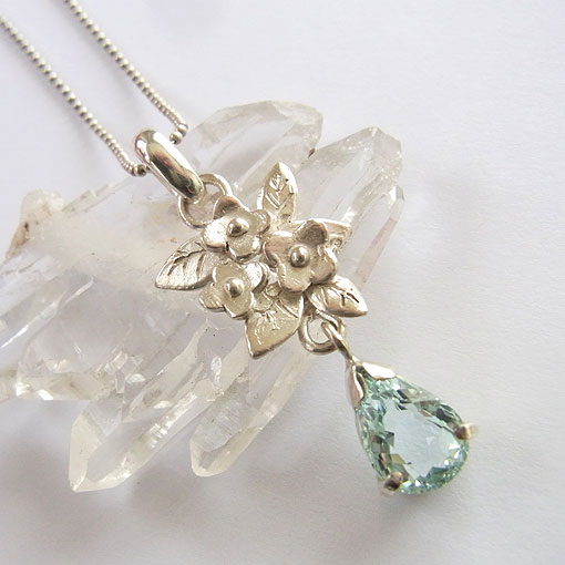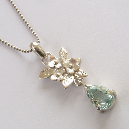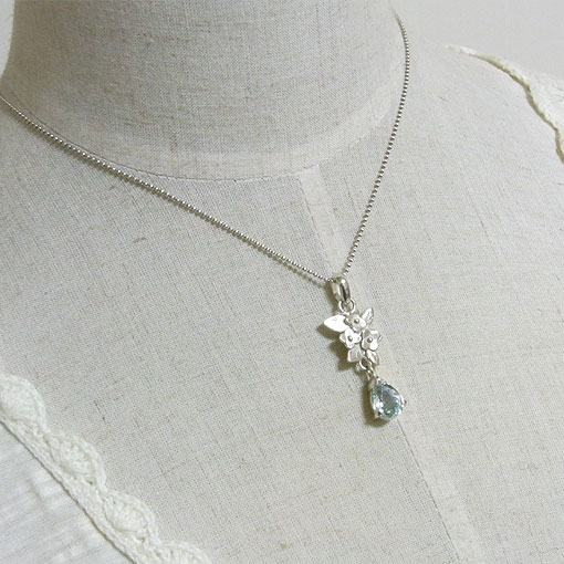 アクアマリンの小花飾りペンダント