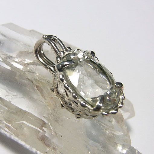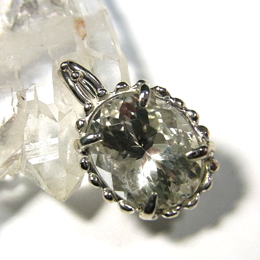 細かなカットを施されたヒマラヤ水晶をシンプルなペンダントに仕上げました。 石の全体から湧き上がるような輝きが大変美しい石です。 クル渓谷(インド北部のチベット寄り)で産出される水晶は良質で大変美しいのですが、 高地のため、重機などが入ることができず手掘りで採掘されるため 高値で取引されています。 今回のカットルースになるようなものは、さらに希少になるようで 同じ品質のものは、 たまにしか入荷しませんので、お気に召していただけましたら、お早めにどうぞ♪