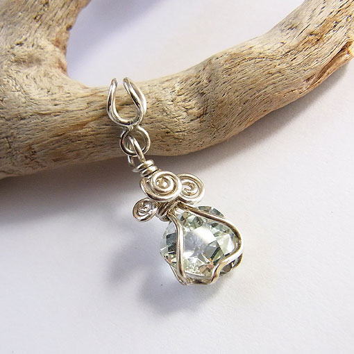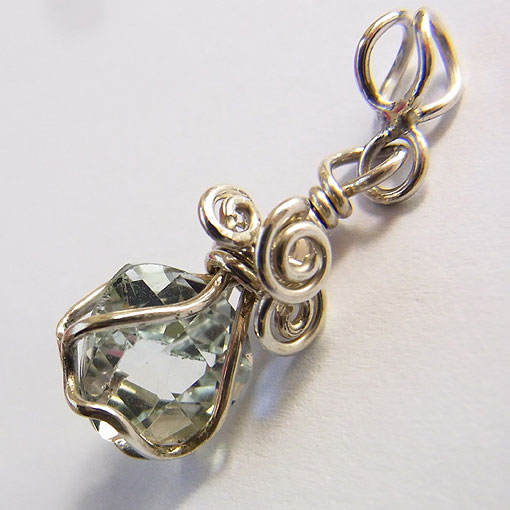 ホワイトトパーズの銀線籠ペンダント ホワイトトパーズの裸石を銀線で作った籠に閉じ込めた華奢な印象のペンダントです。 トリリアントカットで、表面がチェッカーのようになっています。 ホワイトトパーズとして仕入れましたが、うっすら青っぽく見えます。 *トパーズ* 黄色のものが価値が高く、こちらのようなカラーレスに近いものは同じトパーズでも よくあるブルートパーズはホワイトトパーズに熱処理や放射線などを照射して色変化を起こしています。 | |