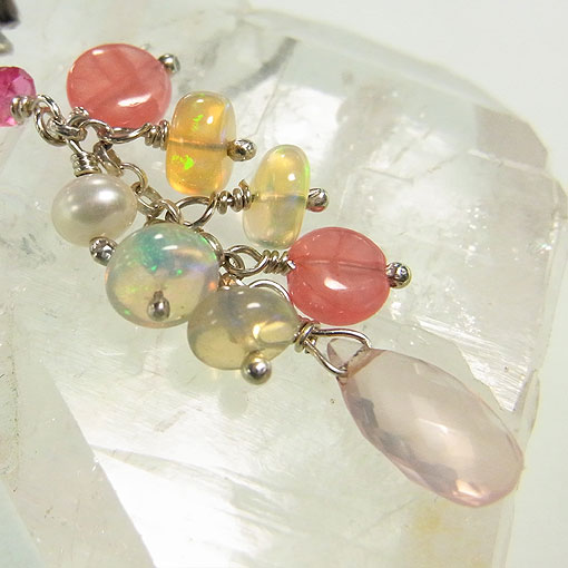 *ローズクォーツ* 少量のチタンを含むことにより、淡いピンクに色づいた水晶です。 *インカローズ* *エチオピアオパール* 近年、よく見かけるようになった遊色の美しいエチオピア産のオパールです。 *ピンクサファイア* *淡水パール* | |