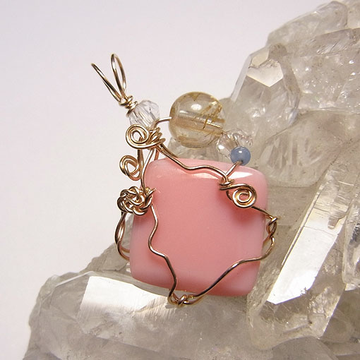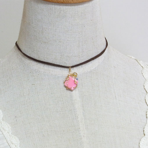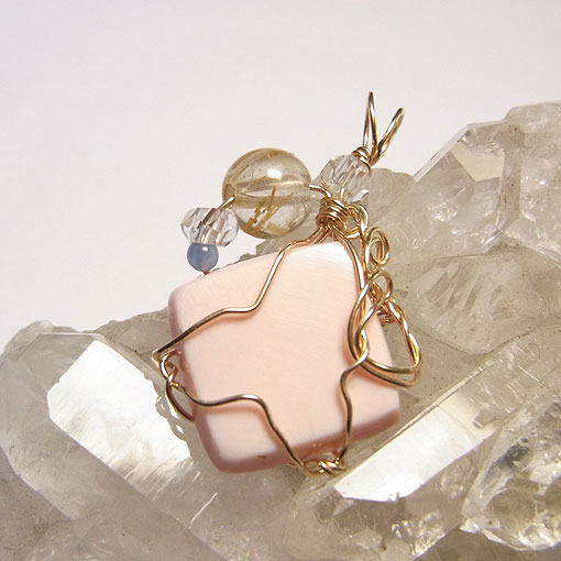 コンクシェルのペンダントk14GF 濃いピンク色のコンクシェルをk14GFワイヤーでペンダントに仕上げました。