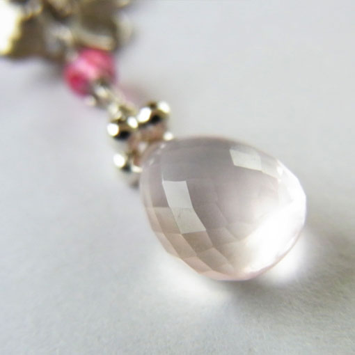 *ローズクォーツ* 少量のチタンを含むことにより、淡いピンクに色づいた水晶です。 こちらで使用のローズクォーツは細かいカットを施されたブリオレットになります。