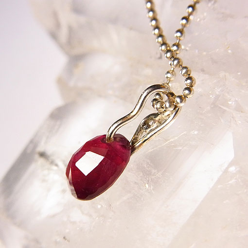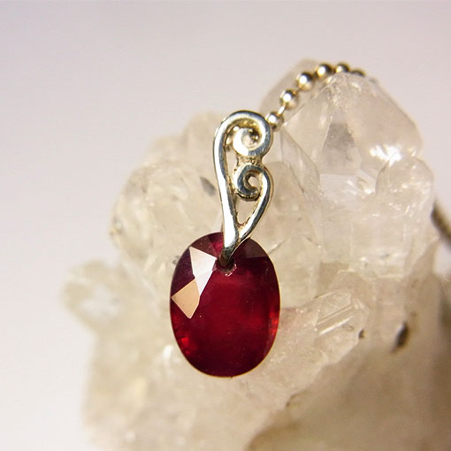 真っ赤な穴あきルビーに唐草のバチカンをつけたシンプルなペンダントです。