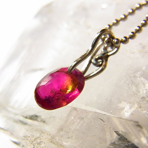 ルビーの唐草ペンダント 2 ややピンク系な色合いの穴あきルビーに唐草のバチカンをつけたシンプルなペンダントです。