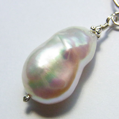 ピンクやグリーンの輝きが浮かぶプックリ可愛い淡水パールです。