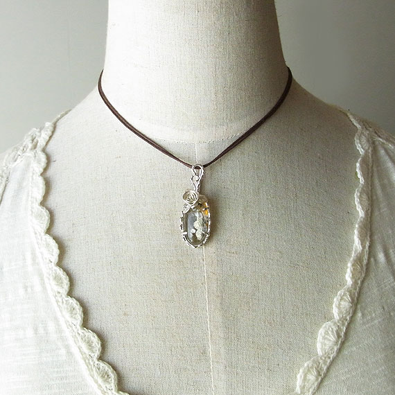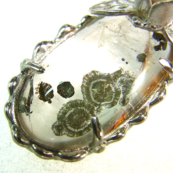 パイライトinクォーツの薔薇ペンダント (訳あり) パイライトがディスク状の形で入り込んでいる面白い水晶を *パイライトinクォーツ*