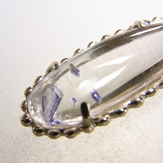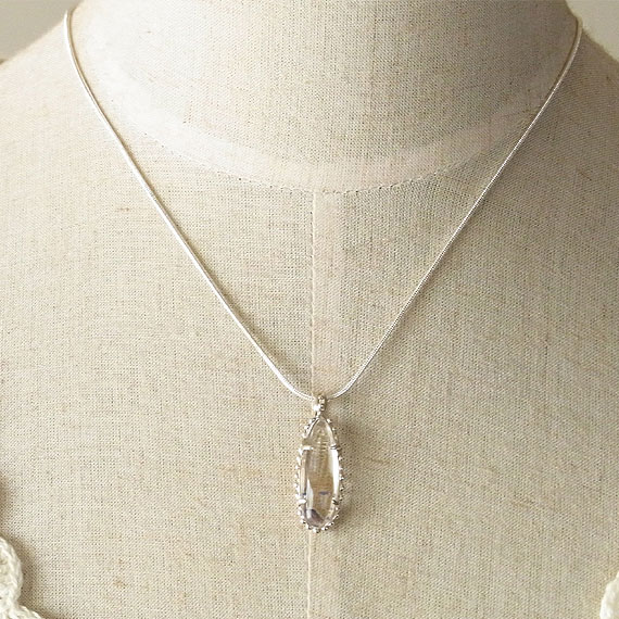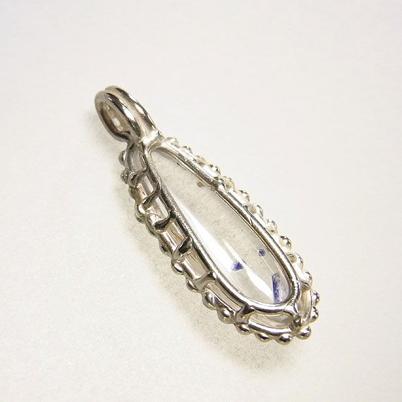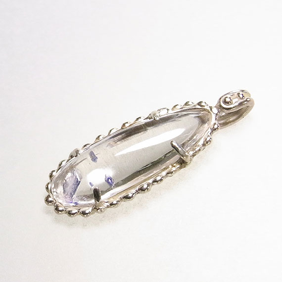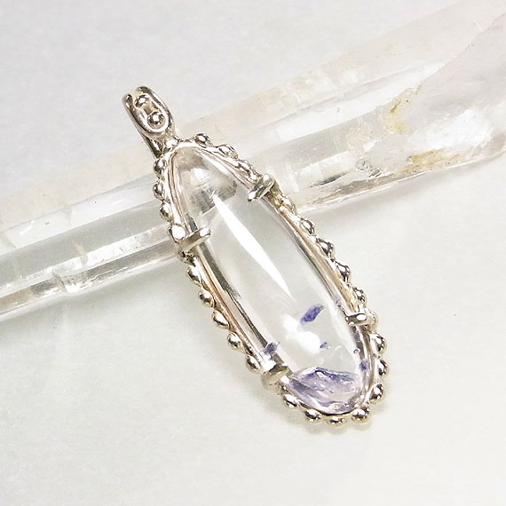 フローライトインクォーツの粒飾りペンダント マダガスカルで産出する珍しいフローライト(蛍石)を内包した水晶のルースを 水晶自体に透明感があるので、内包されたパープルカラーのフローライト結晶が |