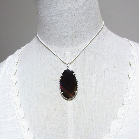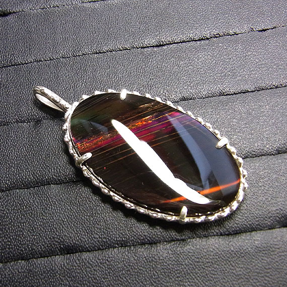ファイアーオブシディアンのペンダント(オレンジパープル系) オレゴンで産出するレアストーン「ファイアーオブシディアン」を