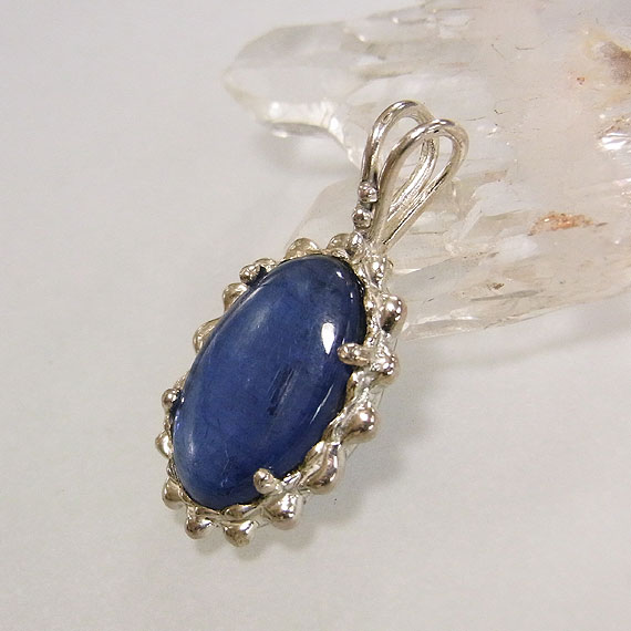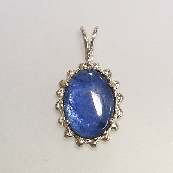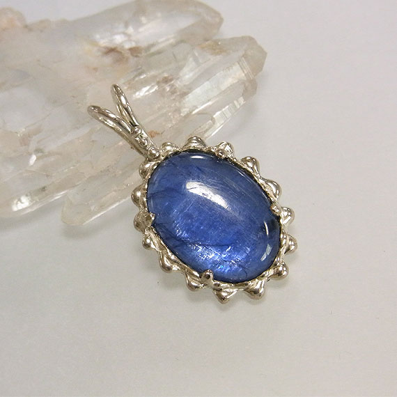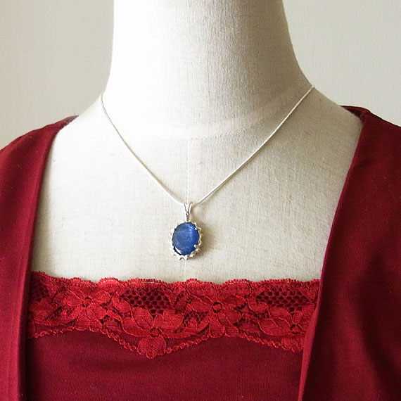 カイヤナイトのペンダント 鮮やかなブルーが美しいカイヤナイトを石枠にテクスチャをつけた