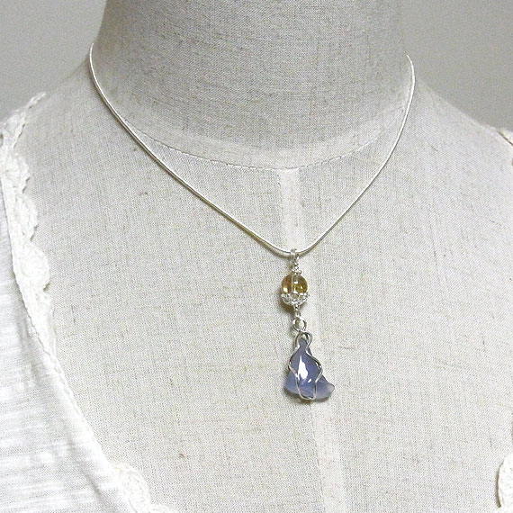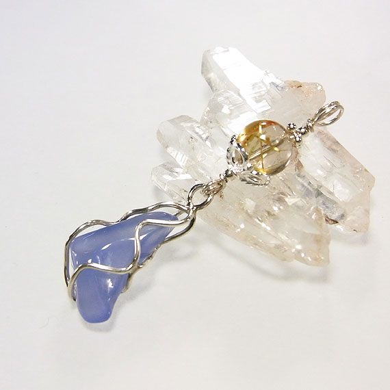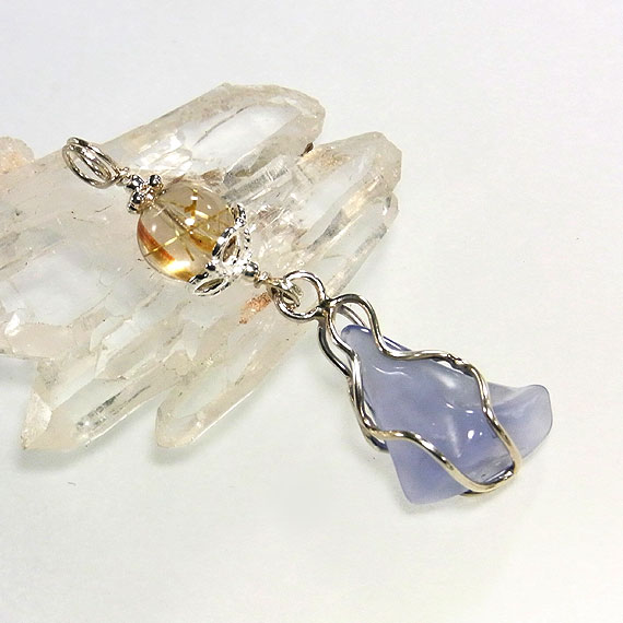 ブルーカルセドニーとルチルクォーツのペンダント ラベンダーブルーの発色が美しいナミビア産のブルーカルセドニーと