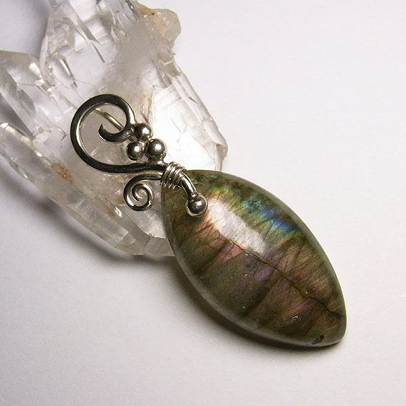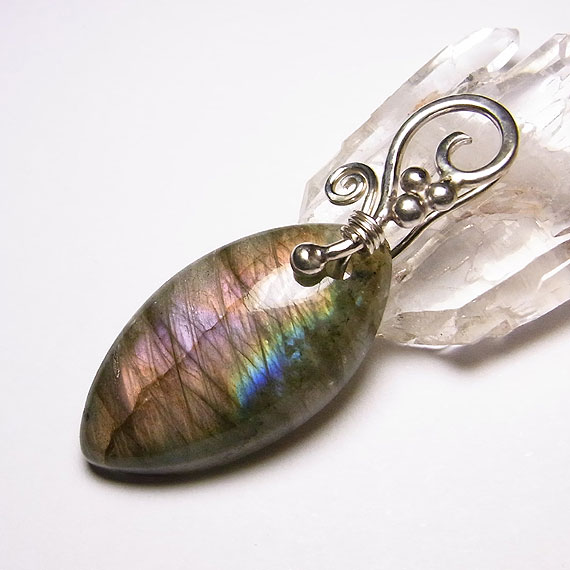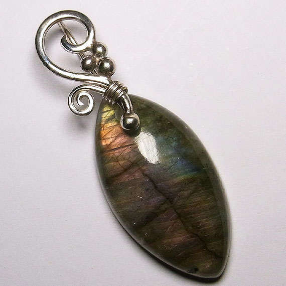 *ラブラドライト* カナダのラブラドールで発見されたことからラブラドライトと呼ばれる斜長石。 大粒のペンダントなので太めのチェーンや革紐に通してお使いください。 |